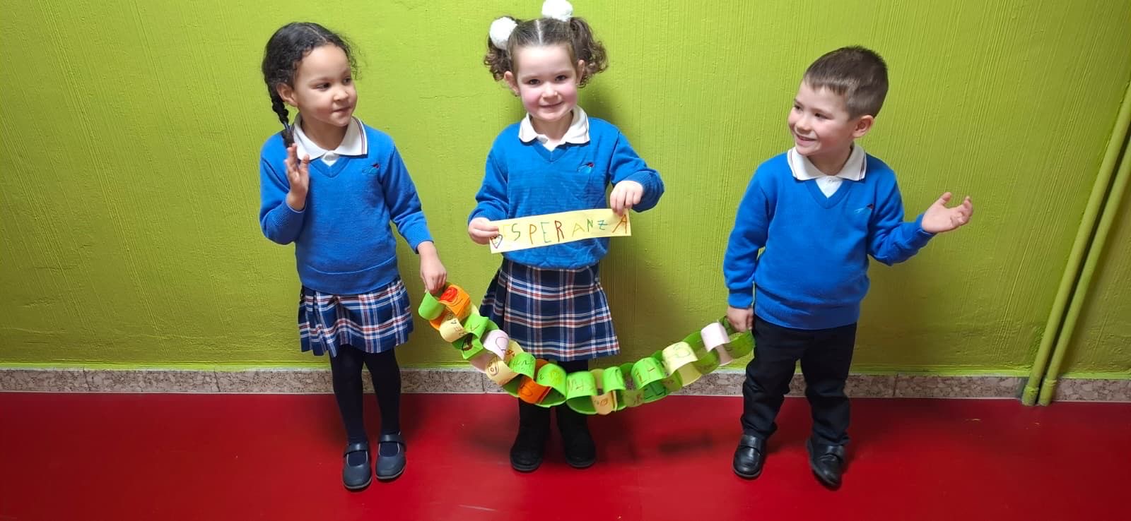 Las palomas blancas pintadas a mano y los carteles con mensajes de esperanza decoran ahora nuestros pasillos. Pero, sobre todo, destacan las cadenetas que ya cuelgan uniendo los pilares de nuestro centro, simbolizando que el diálogo y la empatía son las mejores herramientas para superar cualquier obstáculo.