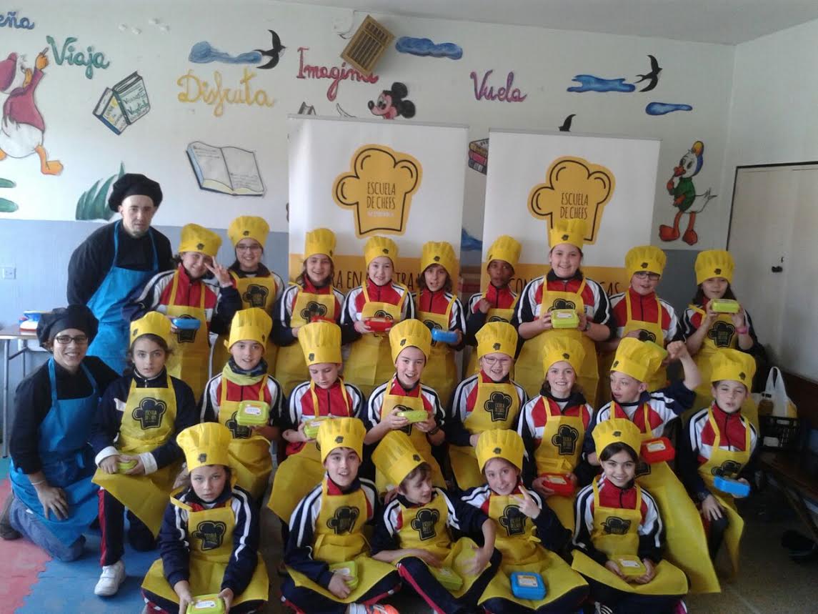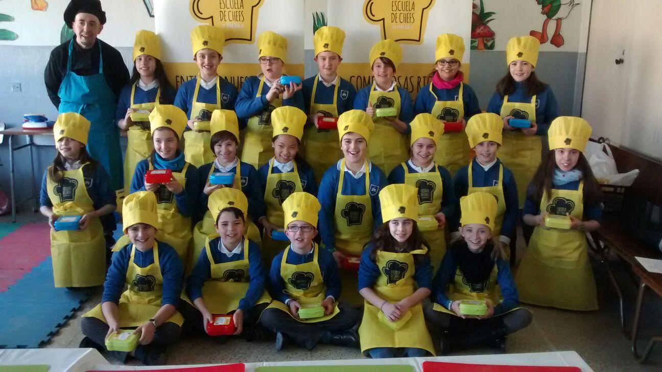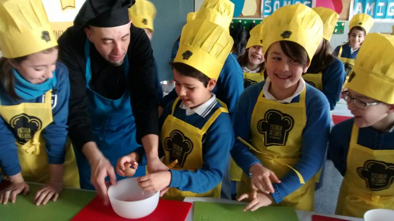 Los alumnos de cuarto de primaria se han sentido cocineros por un día en la » Escuela de Chefs», actividad propuesta por Alimerka. Para comenzar simularon una compra de productos frescos, cantidad adecuada y precio razonable.