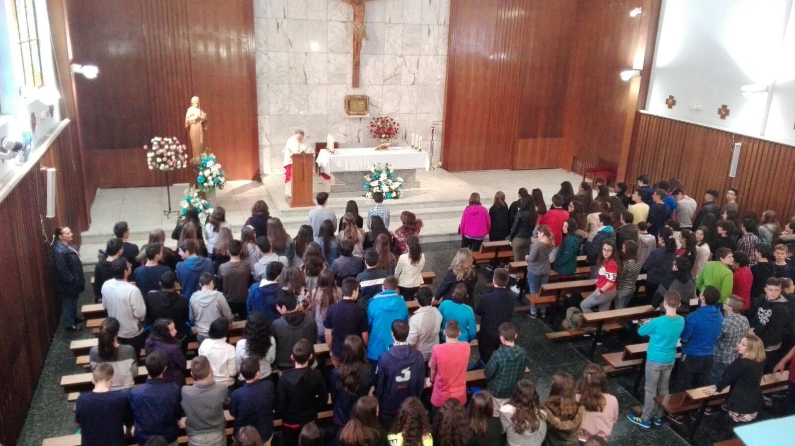 El viernes como viene siendo tradición tuvimos una Eucaristía de acción de gracias con la ofrenda floral a nuestra Virgen Blanca en la capilla del Colegio. Asistierontodos los alumnos desde Infantil a Bachillerato así como profesores y demás miembros de la comunidad educativa.