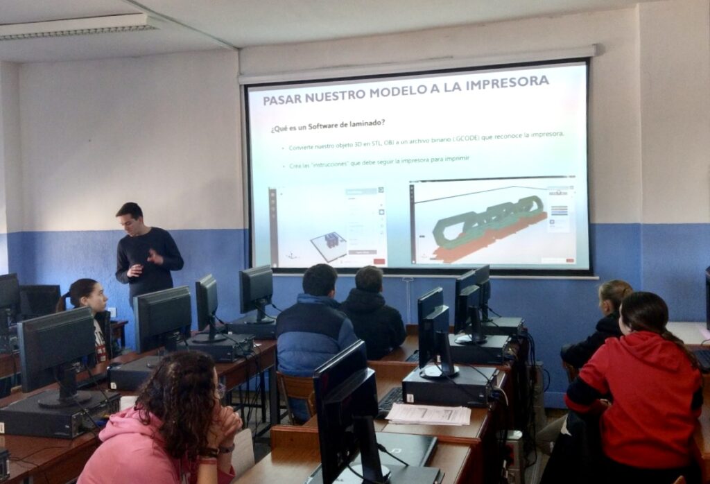 Estos días el alumnado de la asignatura de TIC está recibiendo formación de la impresora 3D a cargo de tres exalumnos: Guillermo Martínez, Sergio González y Gabriel Correia. Les han explicado a sus compañeros con gran profesionalidad cómo crear diseños y modelado con el programa Tinkercad.