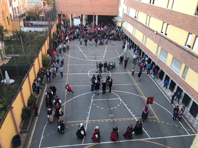 Como cada año por estas fechas, en nuestro Colegio celebramos la llegada del otoño con la fiesta del tradicional «magosto». Este día el patio se llena de niños de todas las etapas educativas, familias, profesores y todos los miembros de la comunidad educativa. La asociación de madres y padres de alumnos (AMPA) colabora activamente en la celebración de esta actividad. En un ambiente festivo se degustan castañas asadas, se disfruta de los bailes regionales del grupo Hacendera y también contamos con un desfile de pendones de las localidades de Cuadros, Lorenzana, Villalboñe, Montuerto, Santibáñez y Gradefes. La tarde se prestó también para la convivencia entre todos los asistentes en un ambiente distendido y agradable.